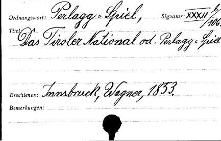 Die ersten schriftlichen Zeugnisse stammen aus dem Buch "Das Tiroler National- oder Perlagg-Spiel - erklärt von einigen Etschländern" aus dem Jahre1853.
